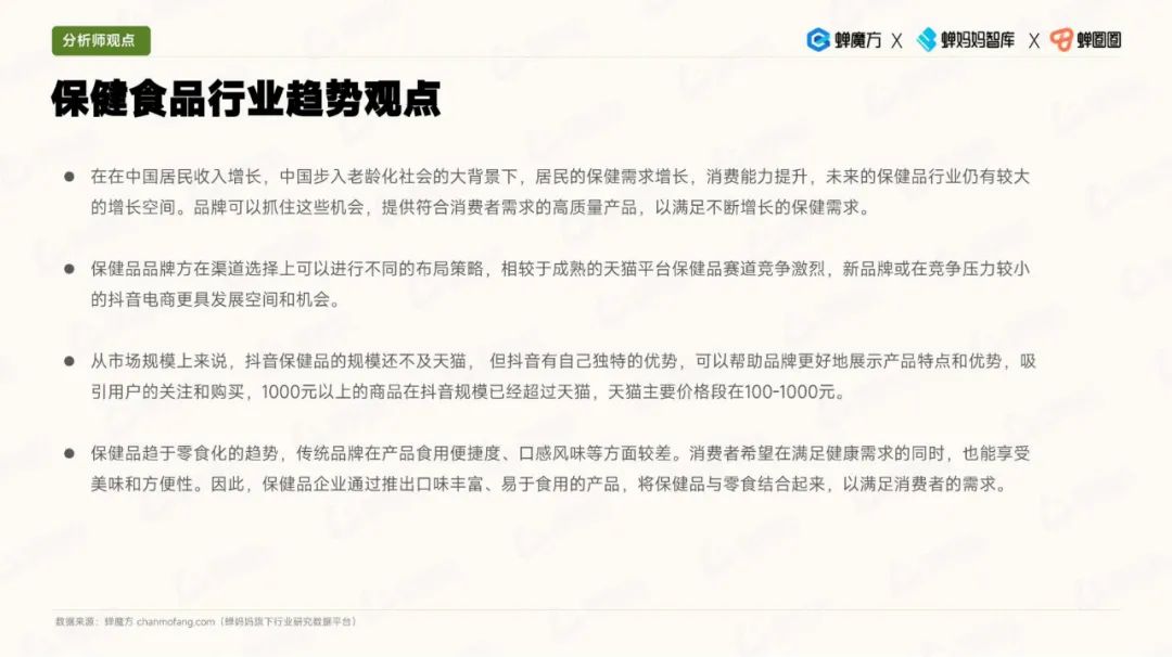 随着人们对健康意识的不断提高,保健食品行业迎来了蓬勃发展的机遇。据《抖音电商保健食品行业研究报告》显示,消费者对保健食品的需求不断增长,市场竞争格局也在加剧。为了满足消费者多样化的需求,传统保健食品品牌开始创新,将产品剂型趋向更加方便的“零食化”。