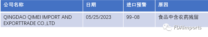 最近,我国一家食品企业因西蓝花和菠菜中含农药残留被FDA列上自动扣留黑名单99-08,FDA对其实施不经检验自动扣留。