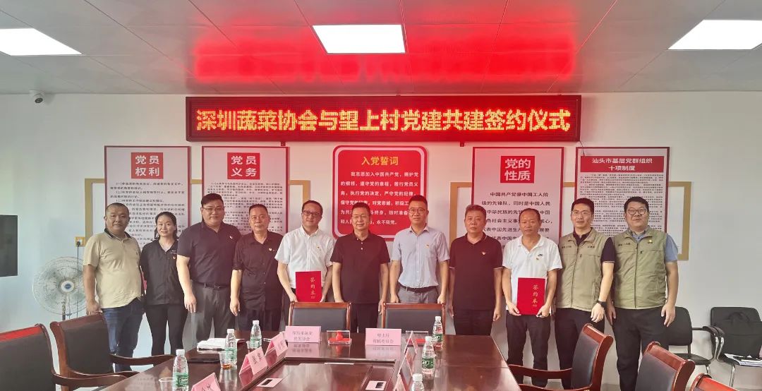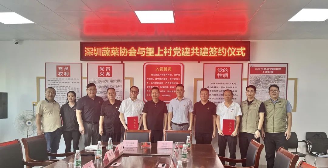 在参会人员的共同见证下,深圳市蔬菜批发协会与望上村举行基层党组织党建共建协议签订仪式,探索产业链上下游党组织联建共建的“三链”融合帮扶新模式,推动全方位合作。