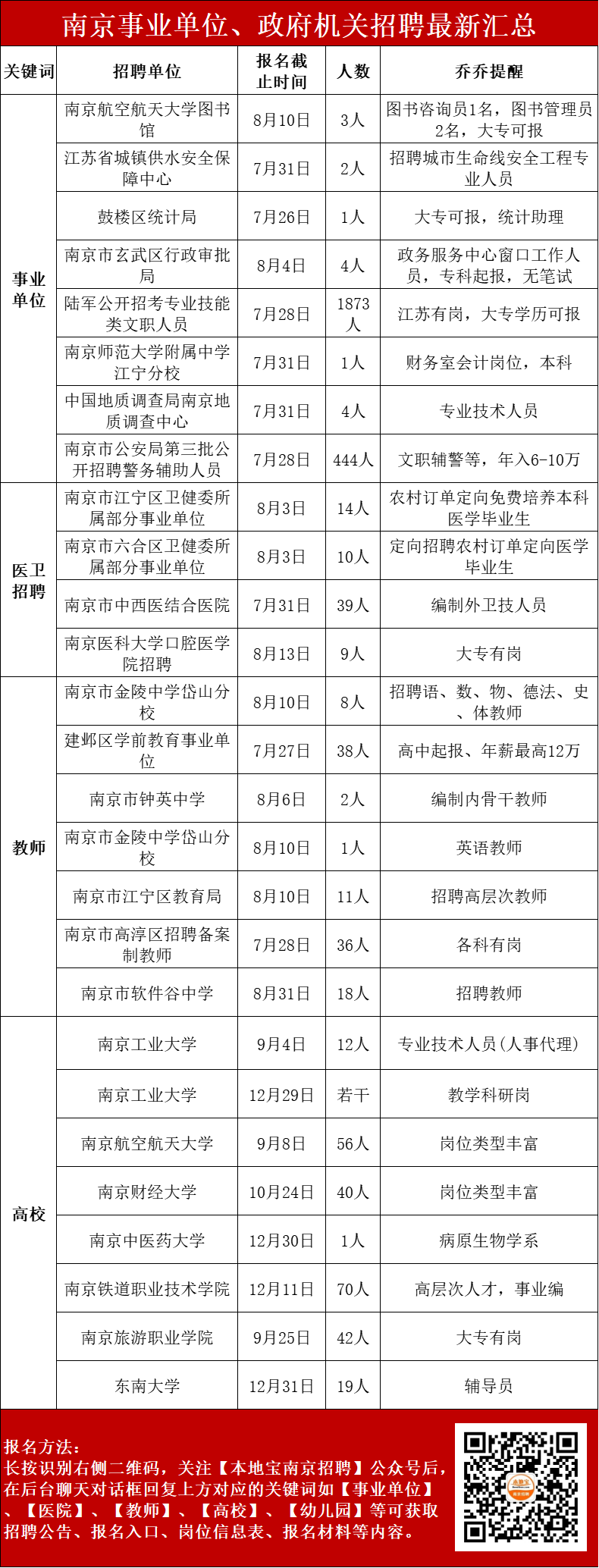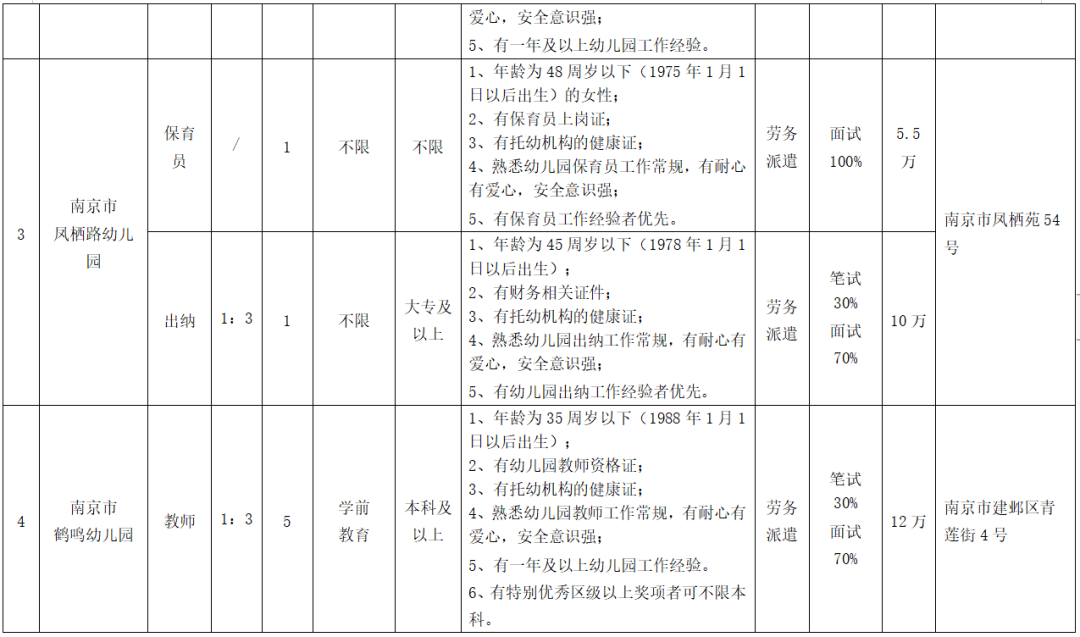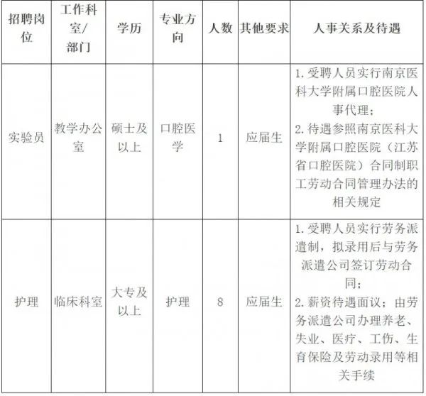 待遇:聘用人员收入约人均51000元/年(含个人缴纳的“五险一金”),用人单位按国家相关规定缴纳社会保险费和住房公积金。试用期内,聘用人员工资不低于南京市最低工资标准。