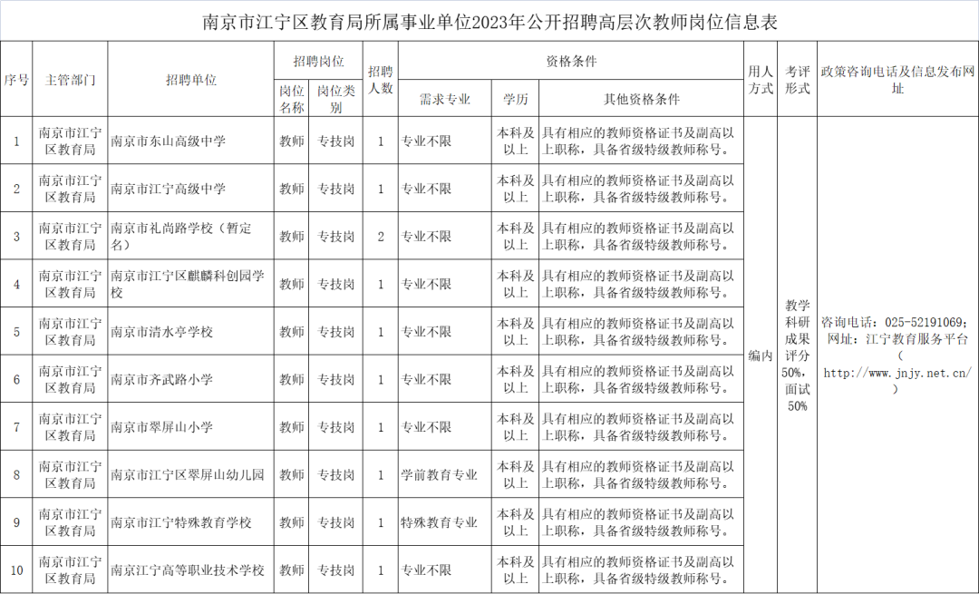 南京市江宁区教育局所属事业单位2023年公开招聘11名高层次教师