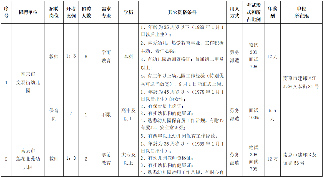 建邺区现面向社会公开招聘学前教育事业单位编外工作人员
