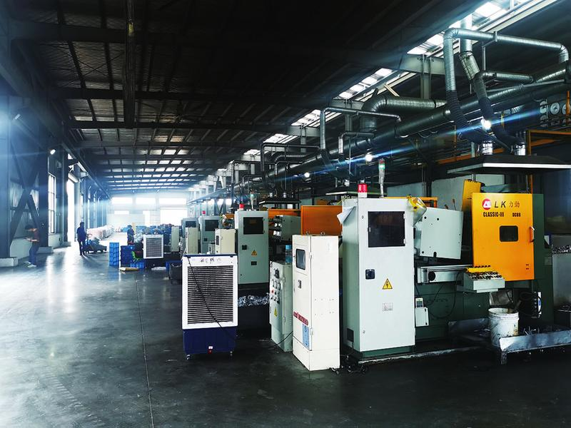 安徽九池智能安防科技有限公司2018年落户集中区,主要从事智能安防技术研发推广和应用服务,今年上半年实现产值约1.2亿元,目前正在安装调试二期项目设备。图为该公司锌合金压铸车间。