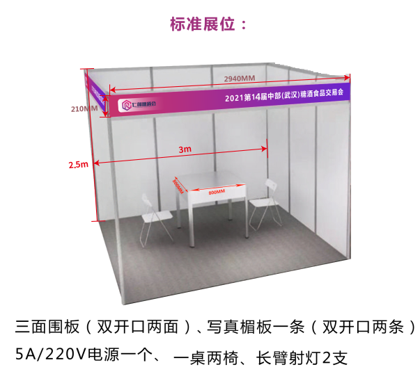 ● 背景尺寸(展商自行制作):宽3米,高2.5米
