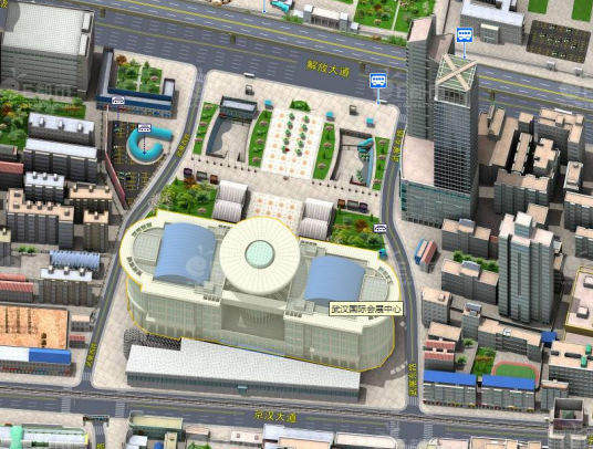 武汉国际会展中心位于武汉市汉口内环线解放大道,地处在武汉核心商圈——武广商业圈,毗邻中山公园等大型 游乐休闲场所,是全国地理位置条件最好的展览馆,没有之一。