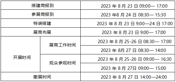注:如需布展加班,需按场馆规定在 8 月 23 日下午 16:00 前统一向主场服务商提出申请及缴纳相关加班费用。