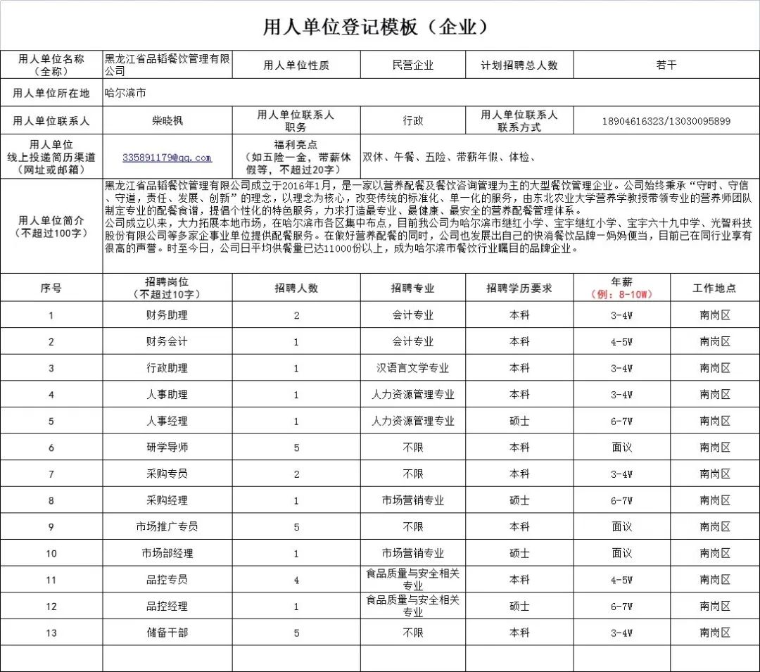 任职要求:1、有管理团队的能力,有培养下属的格局;2、工商管理、企业管理、人力资源管理等专业大专及以上学历;3、有5年及以上人力资源的工作经验,3年及以上人力资源全盘管理经验,具有餐饮企业工作经验优先;4、具备现代人力资源管理理念和丰富的理论知识;对现代企业人力资源管理模式有系统的了解和实践经验,具有解决复杂问题的能力;具备较强的逻辑思维能力、观察能力和应变能力;擅长与人沟通和交往,富有亲和力和较强的说服力。