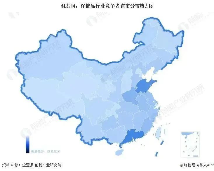 从中国保健食品行业竞争者省市分布情况来看,目前中国保健品企业主要分布在华南和华东等地,特别以广东和山东为代表。根据中国企业数据库企查猫,截至2023年5月15日,广东共有相关保健品存续/在业企业5358家,山东则有4711家。