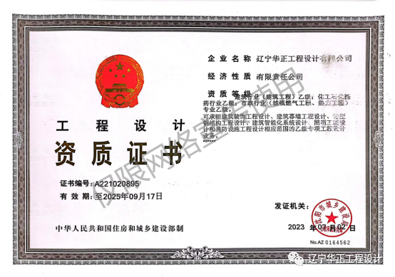 2023年7月2日辽宁华正工程设计有限公司成功增项取得建筑行业(建筑工程)乙级资质,这是公司发展史上又一重大里程碑,也是辽宁华正多年来努力的结果,更是对公司实力的高度认可和肯定。