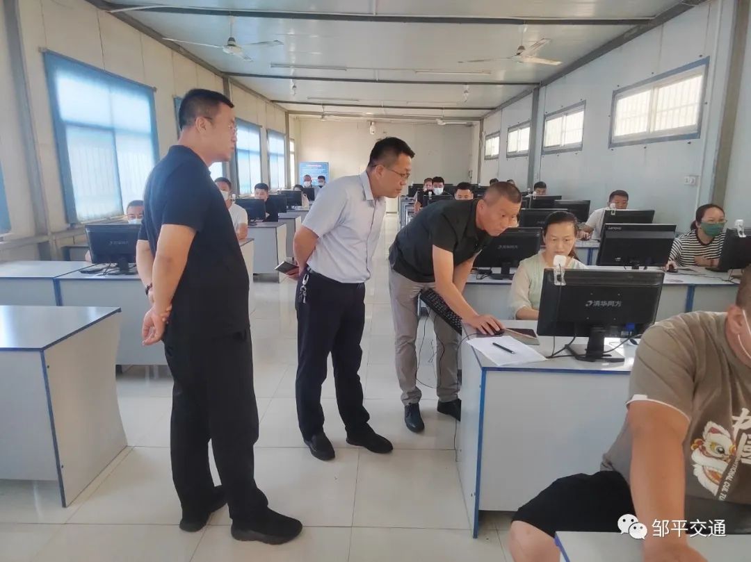 为进一步提高道路运输企业安全管理人员素质和履职能力,认真贯彻执行“安全第一、预防为主”的方针,7月27日,邹平市22家运输企业负责人和专职安全员共38人进行了闭卷考试,邹平市交通运输事业服务中心副主任王继国、运管领导小组副组长王海滨到邹运驾校考点对安全员考试进行监督。