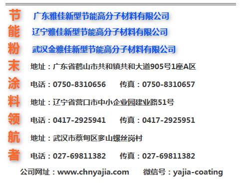 参与标准制定起草,与有荣焉。作为粉末涂料行业的一员,雅佳公司积极的参与各类行业标准的制定,《钢筋防腐用粉末涂料》、《金属护栏用粉末涂料》、《热转印粉末涂料》,其中在2017年11月参与制定的《钢筋防腐用粉末涂料》行业标准,由中华人民共和国工业和信息化部发布,中华人民共和国化工行业标准HG/T 5366-2018《钢筋防腐用粉末涂料》于2019年04月01日正式实施。