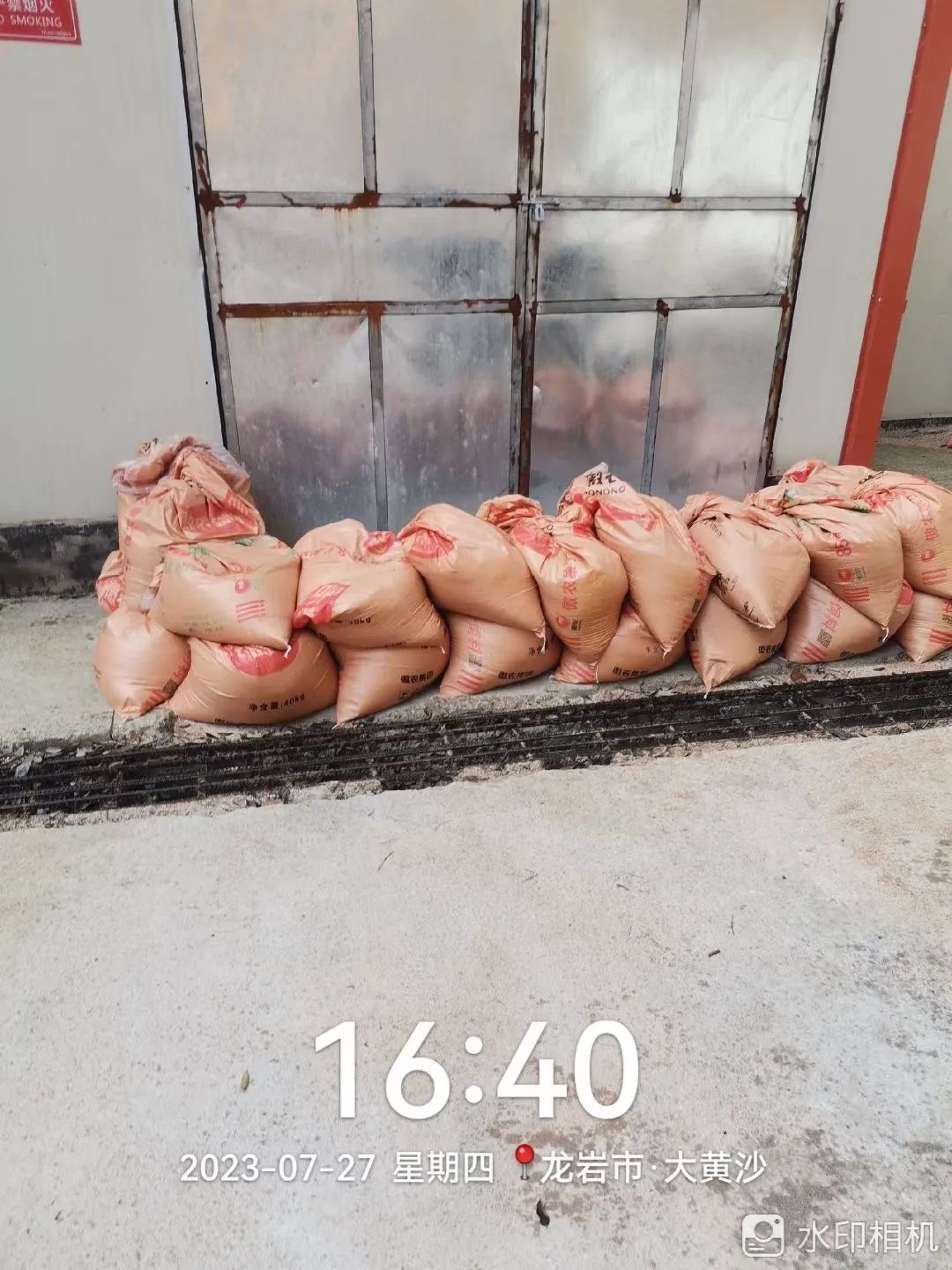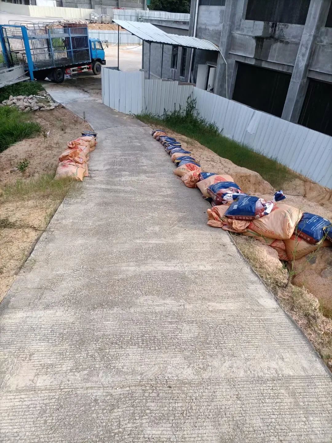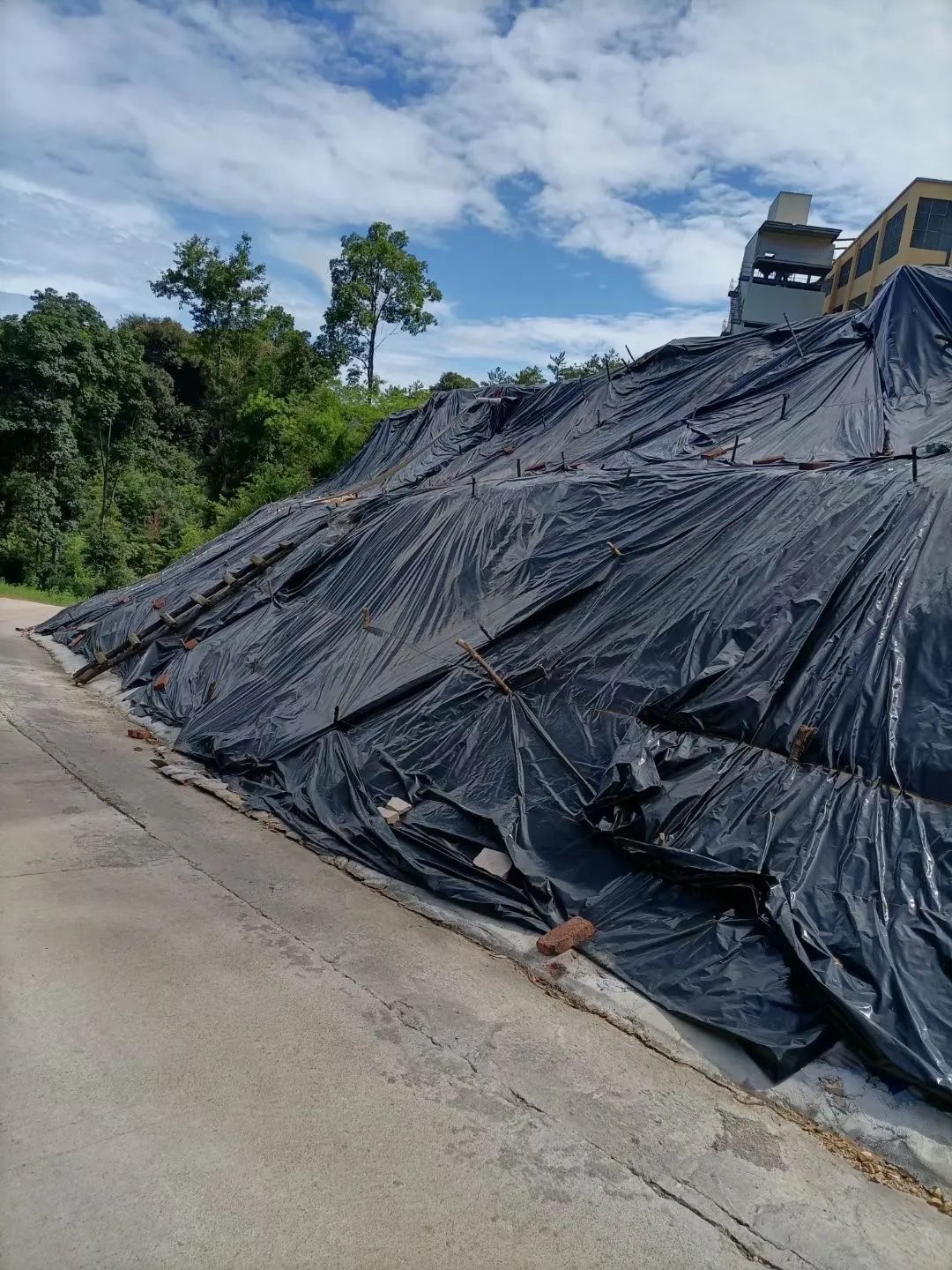 紧急填装沙袋,检查、清理场区泄水管道并护坡,确保场区安全。