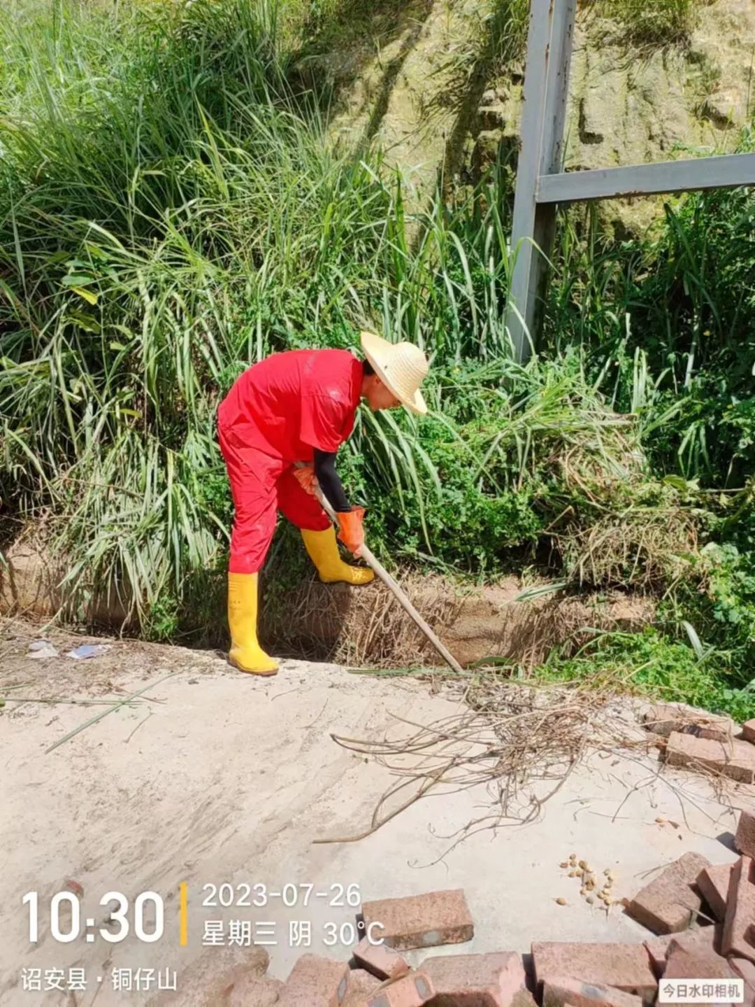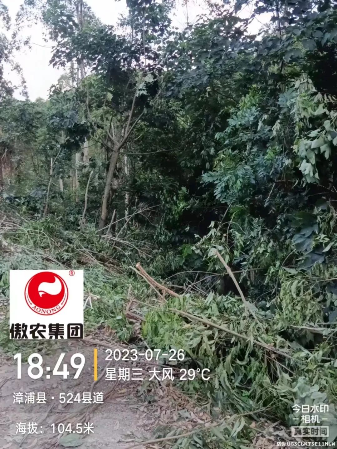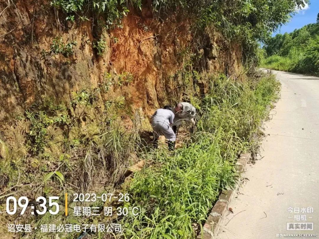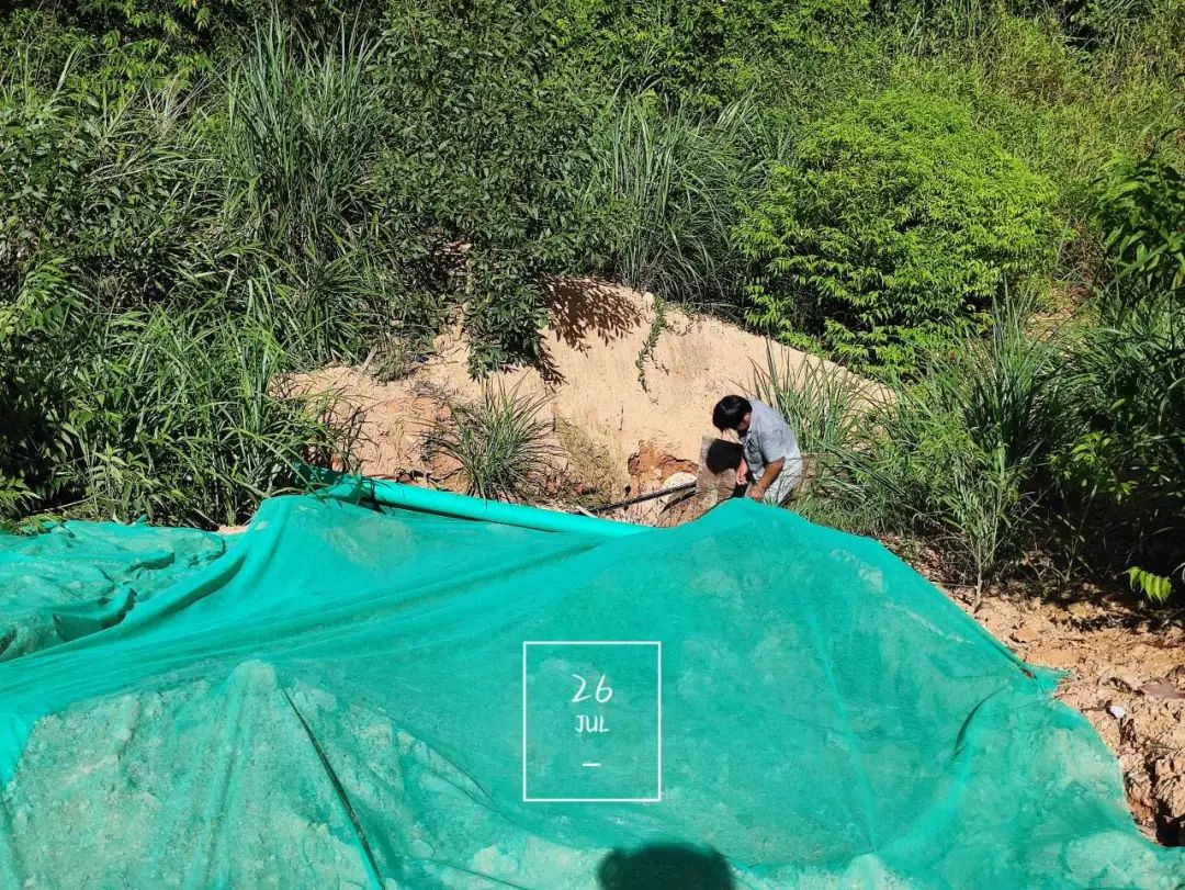 诏安优农组织人员对基地边坡进行检查、疏通清理水沟方便后期排水、将车辆停放至高处防止水淹影响生产;