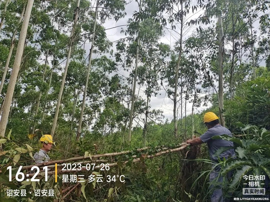 组织人员对场区外高压线周边树木进行清理、查看山体情况并进行护坡;