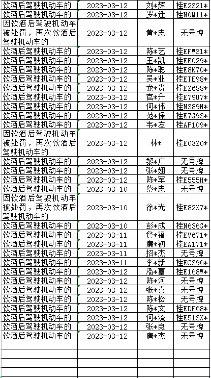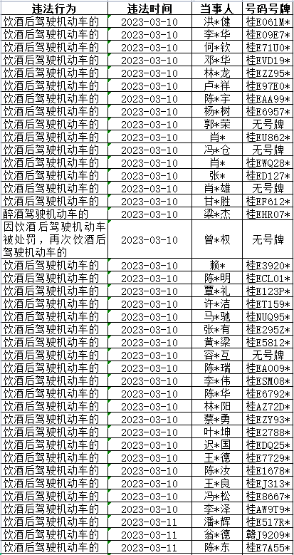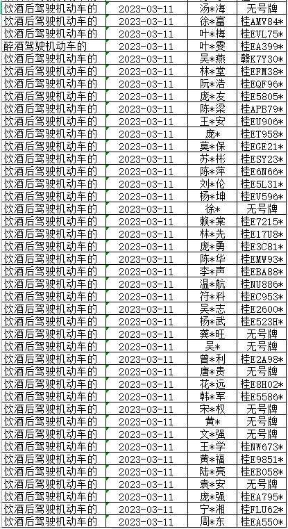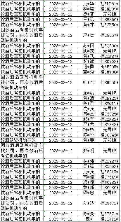 酒驾醉驾重点违法查处名单(3.10-3.12)↓