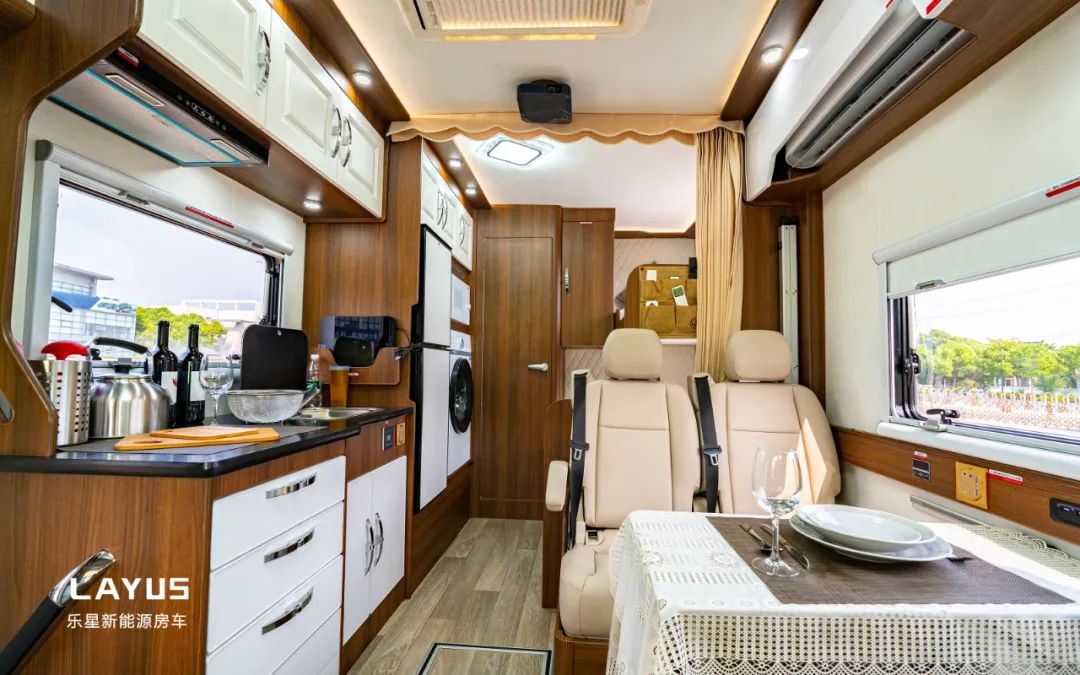 乐星房车的厨房设施更是令人惊叹。现代化的厨房配备了一应俱全的设备,从电磁灶、微波炉、冰箱到智能厨具,无不体现着乐星房车对品质生活的追求。高级的厨房空间,为您提供了便捷的烹饪体验,让您在旅途中依然能够品尝到家的味道。