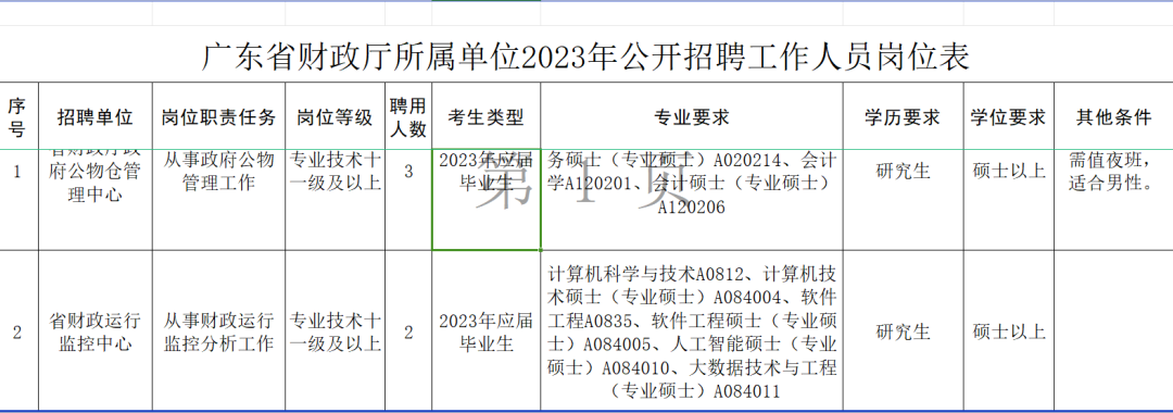 附件:广东省财政厅所属单位2023年公开招聘工作人员岗位表