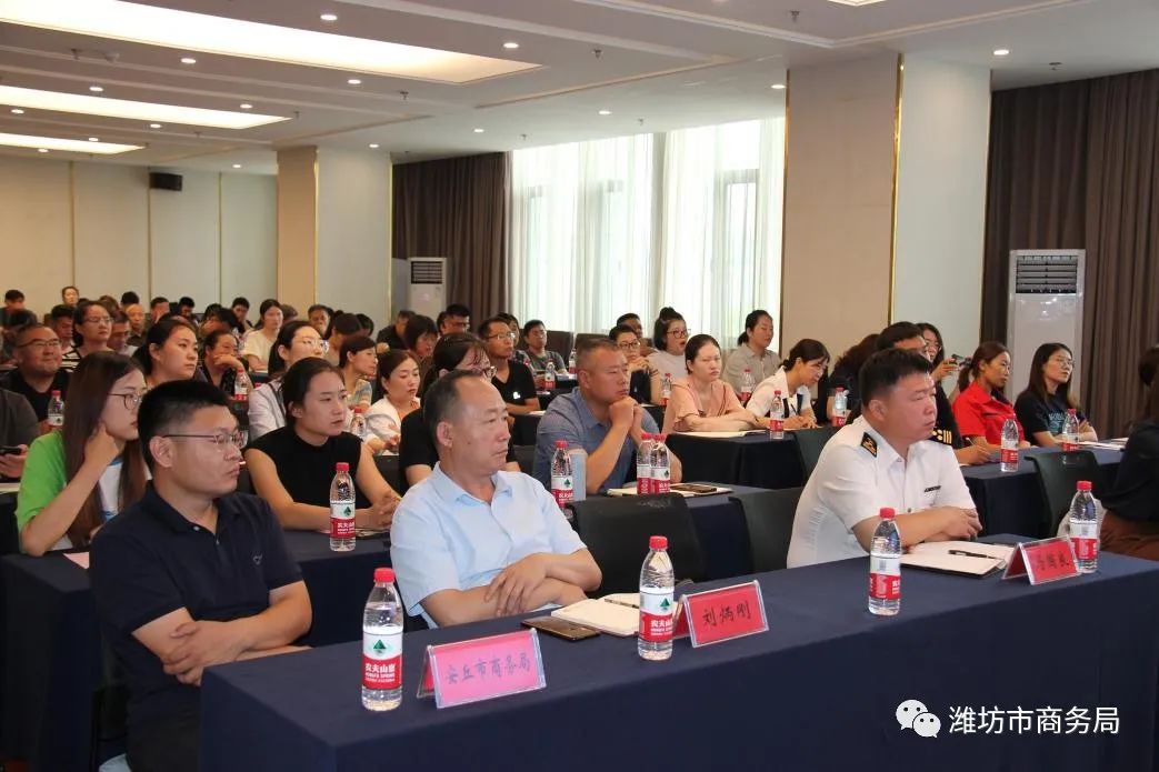 7月26日,潍坊海关、潍坊市商务局在安丘市举办出口食品生产企业应对贸易摩擦暨企业管理能力提升培训会,潍坊市部分县市区商务部门负责人及重点出口食品生产企业负责人100余人参加培训。