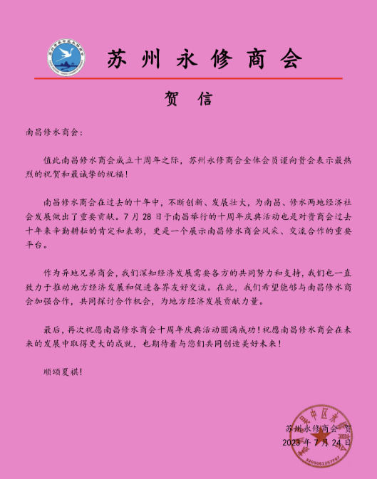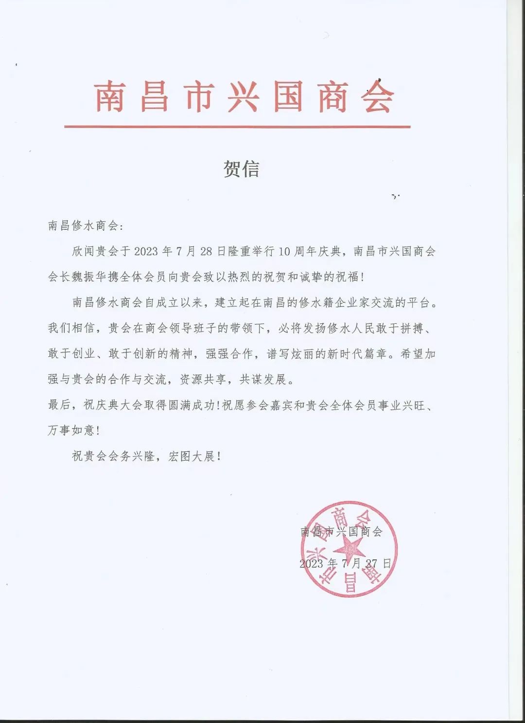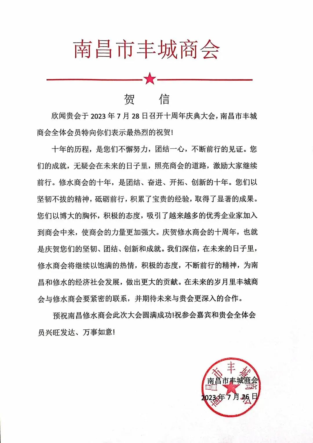 情谊浓浓 | 各地商会纷纷发来贺信 共贺修水商会十周年庆!