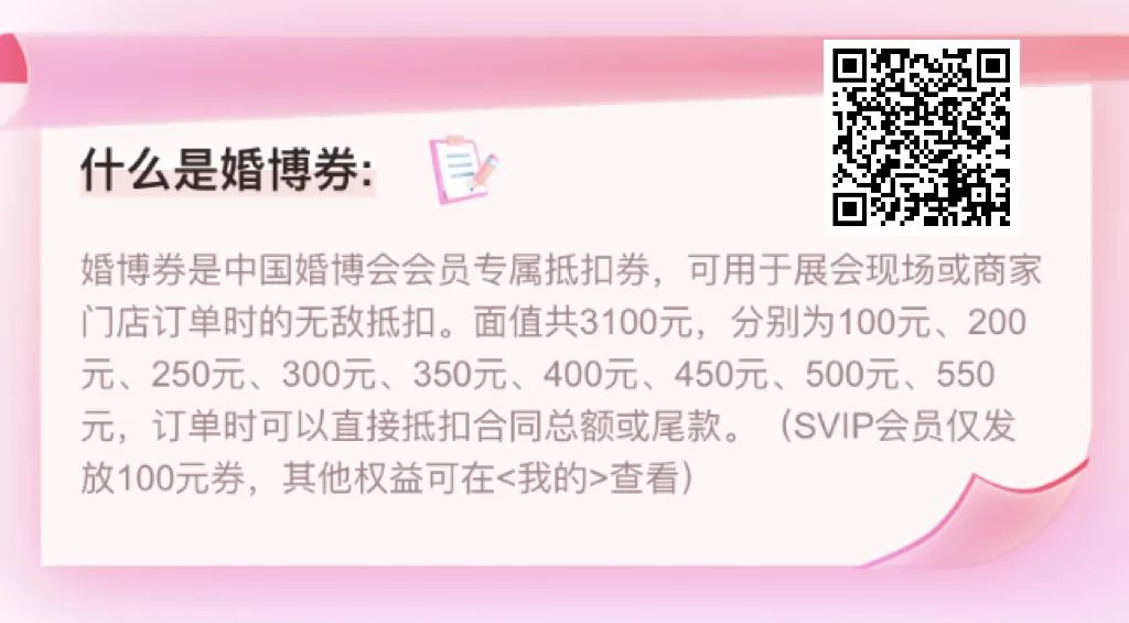 索票或注册成为婚芭莎会员,系统会为您自动下发100-550元共9张婚博券。