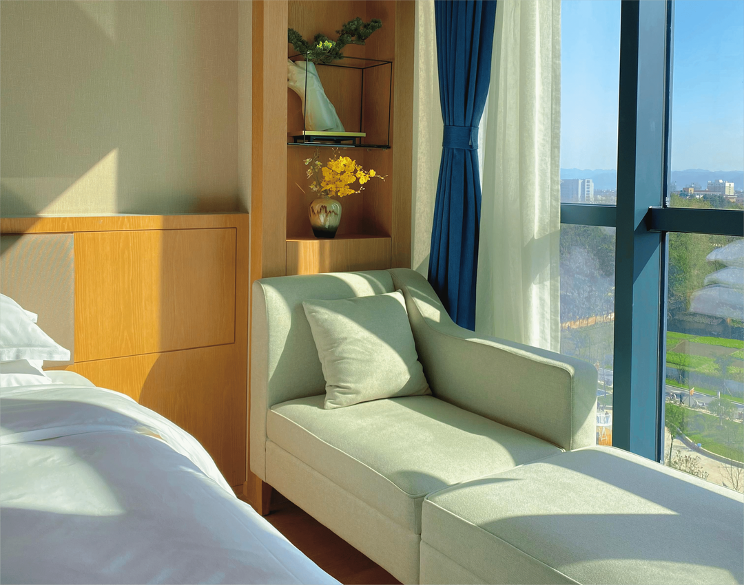 一室一风格,一房一世界。舒适的房间可许一夜好梦,“睡眠专家”的床榻将疲惫尽数释放。引绿意入室,在风景拥簇中苏醒,推开窗,就有属于你的美好风景。
