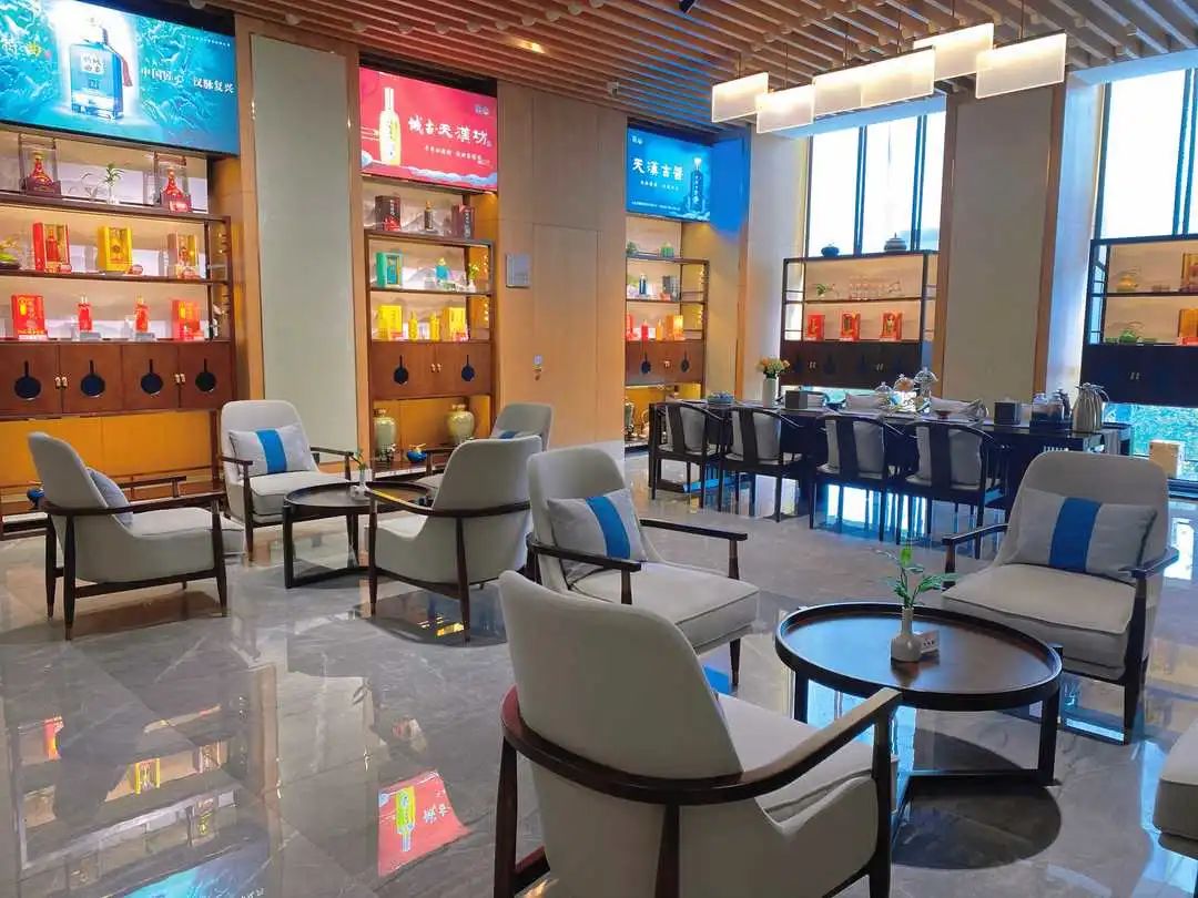 酒业大厦大堂,汉风庄重,气度非凡,华贵典雅。步入大堂,清新的绿植,让您感到心情宁静;先进的空调,让您感受夏日的一抹清凉;精美的酒品,彰显城固的文化底蕴。