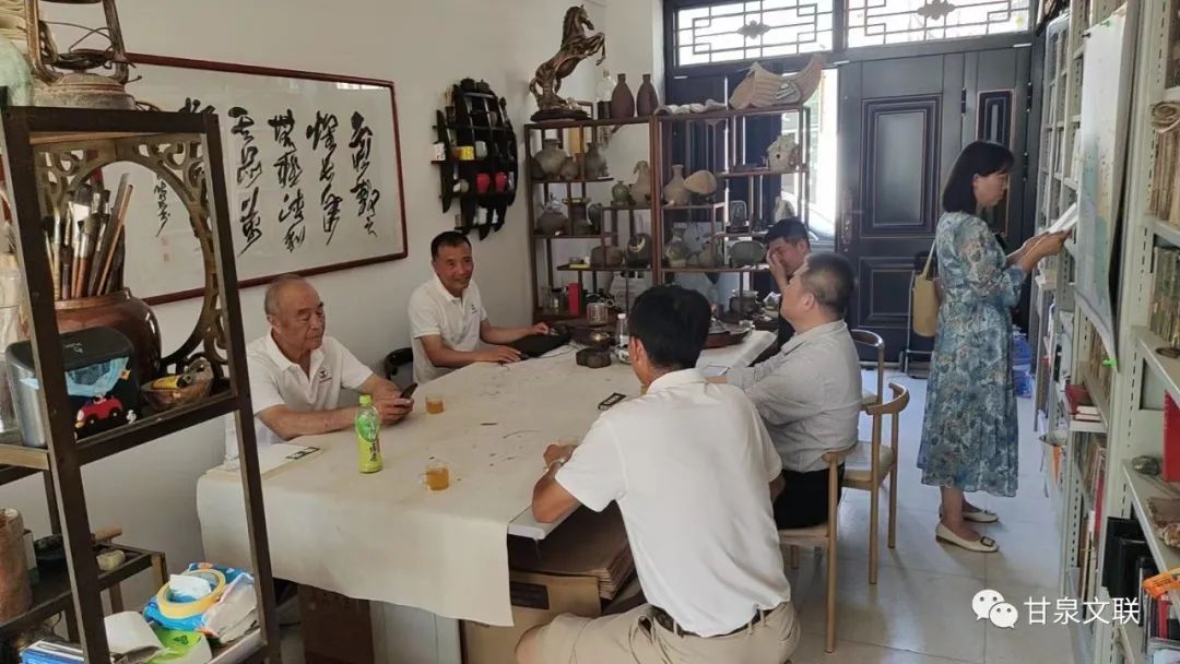 座谈结束后,调研组一行实地走访了作协主席崔喜奎、作协会员张湛武、毛生明个人工作室。作为从事文学工作几十年的老文艺家,满满一屋子的书见证了他们对文学的热爱,宁静的小院中处处弥漫着书香,也激励着我们在场的每一个人。他们表示今后将继续发挥坚守文学本色,扎根人民,创作出更好地紧贴人民、反映时代的优秀作品。