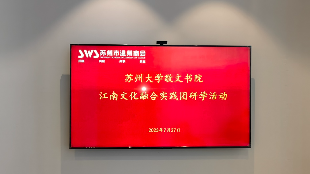 2023年7月27日上午,苏州大学敬文书院师生一行走进苏州市温州商会开展“江南文化融合实践团暑期研学活动”,探索“温州模式”。