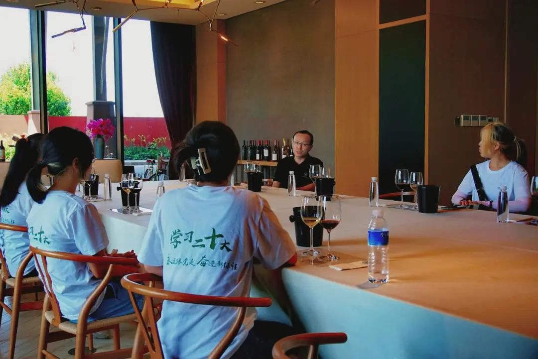 图为调研队在迦南酒庄与董清波先生(右2)就葡萄酒行业相关问题进行交流 翁欣欣 摄