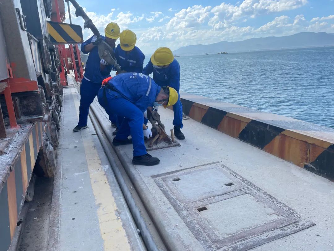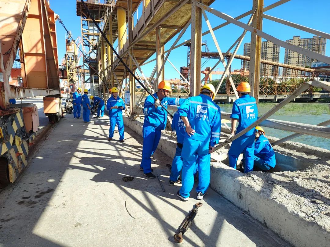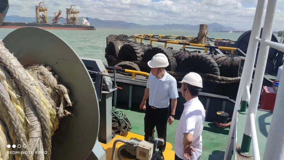 7月25日,生产一线班组利用班前会时间,加强员工防台安全教育,提高员工安全保护意识和应急处置能力,要求员工各司其职,做好防台准备工作。领导班子成员分别带领生产、技术、后勤三个检查小组,前往码头、堆场、机修车间、办公楼、宿舍楼等地,组织对门机和龙门吊等大型设备加固、码头配电箱和发电机房等用电设施、办公楼和宿舍楼消防器材规范配置、宿舍楼屋顶排水系统等各项防范措施进行再部署、再检查、再落实,确保防台工作无遗漏、全覆盖。