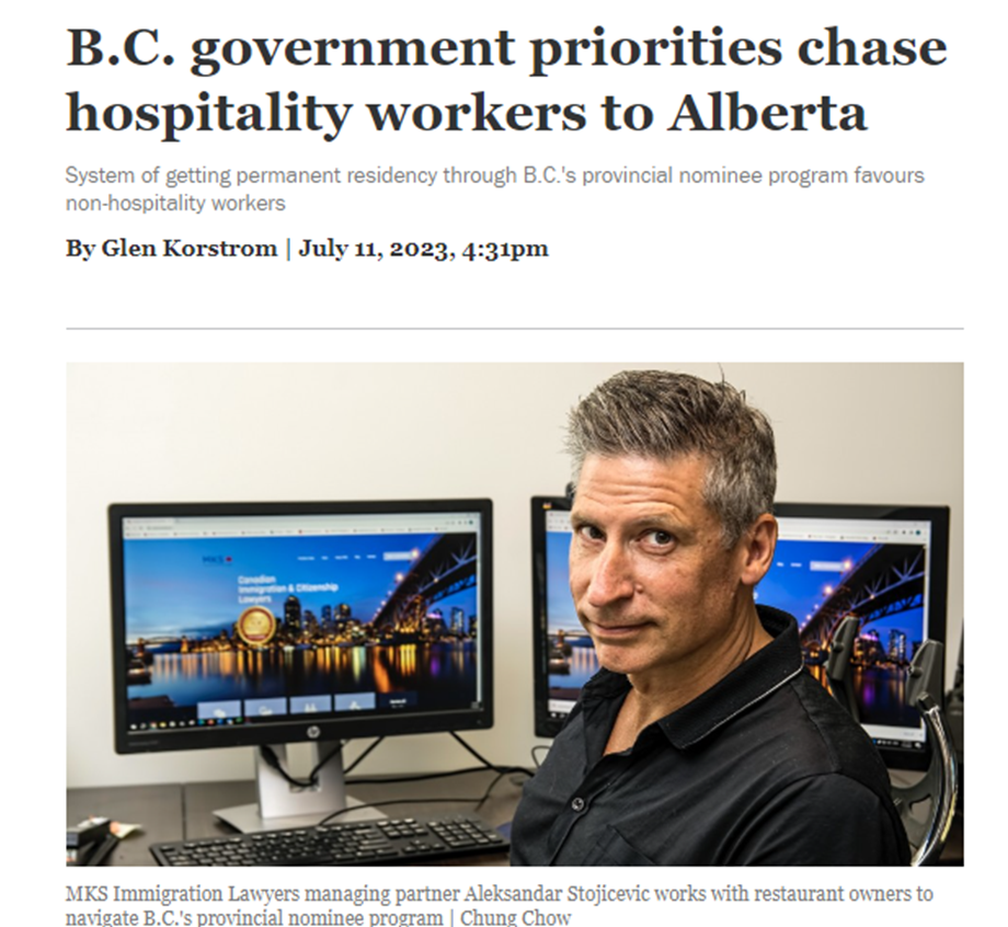 顾问、移民律师、餐馆老板和行业倡导者表示,酒店业从业人员最近发现,从 BC PNP 计划的工作转为加拿大永久居民几乎是不可能的。这促使许多工人搬到其他省份,在那里更容易找到成为加拿大永久居民的途径——这是许多人的共同目标。MKS Immigration Lawyers 管理合伙人 Aleksandar Stojicevic 告诉 BIV:“去年 11 月,该省彻底改变了 BC PNP,现在,如果你是一名厨师,比如说在温哥华,几乎不可能通过 BC PNP 获得永久居民身份。”