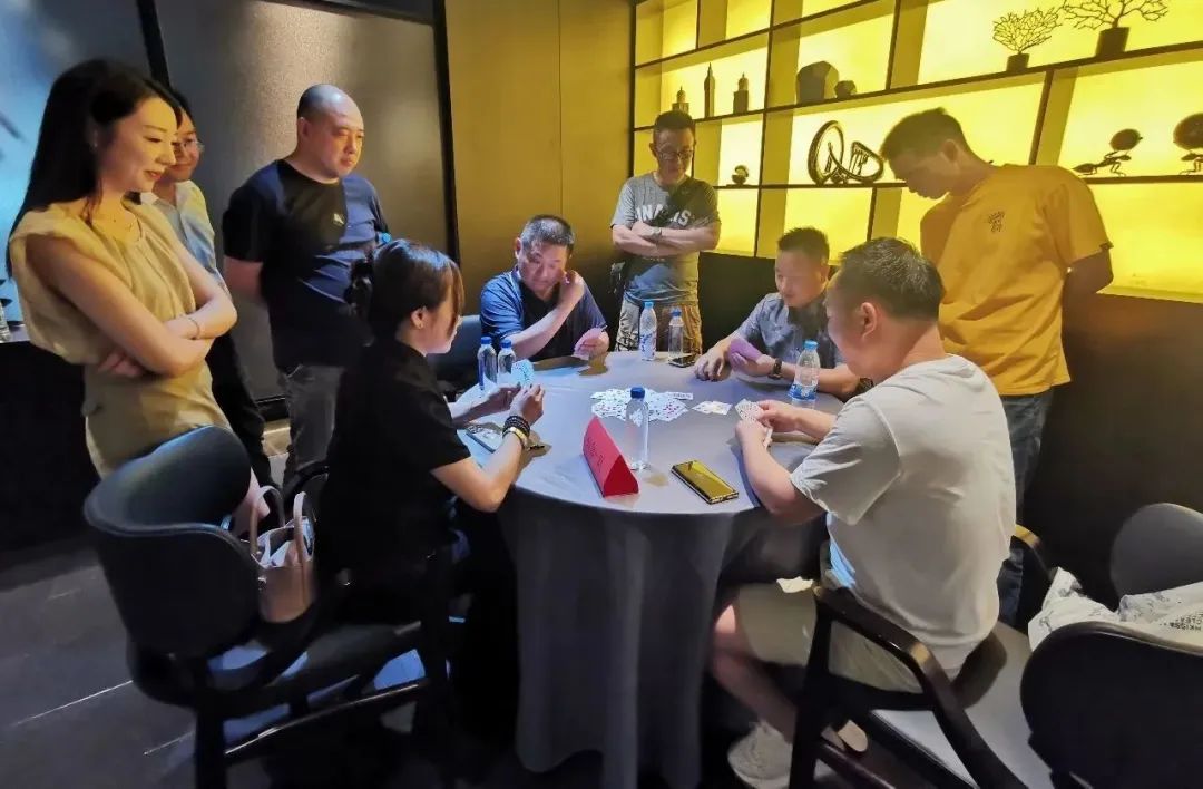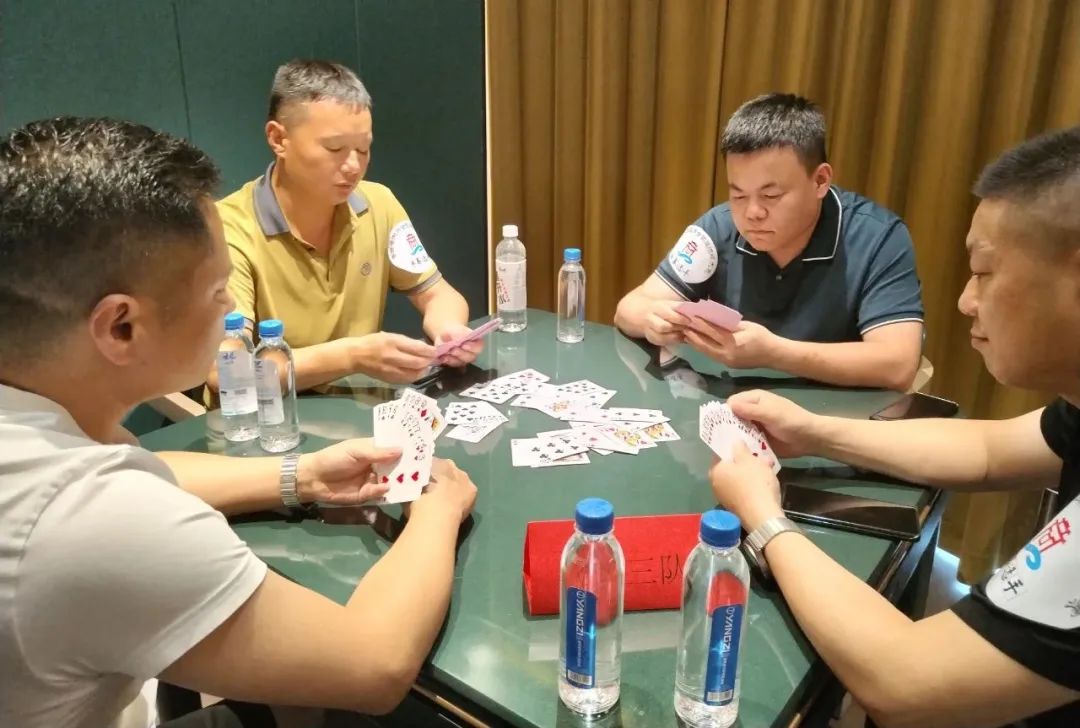 比赛中共有32位选手参与角逐。现场,选手们欢聚一堂,秉承着“友谊第一,比赛第二”的原则,在牌桌上激烈比拼,斗智斗勇,呈现出风格迥异的比赛态势。现场气氛紧张热烈、友好和谐,选手们密切配合,精确计算,沉着应战。对阵双方比牌技、比智慧、赛成绩。
