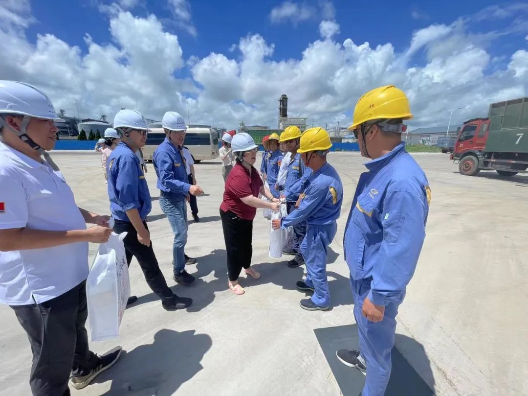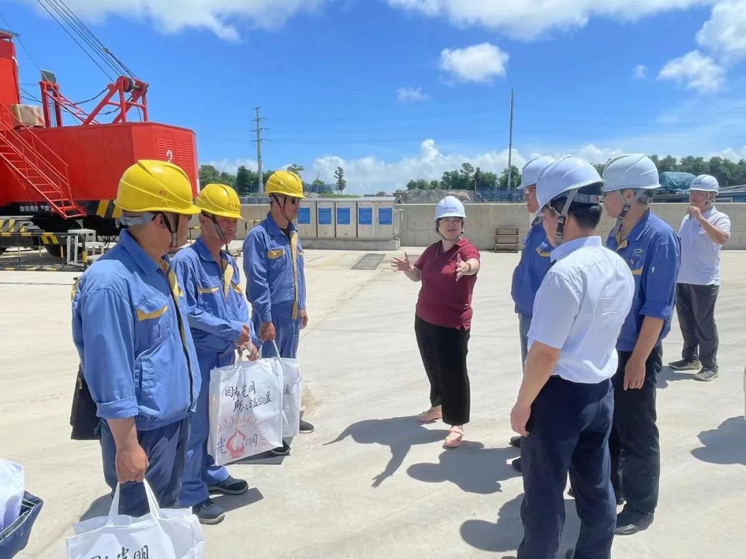 7月27日上午,光明食品集团党委副书记朱晨红在集团党委工作部部长刘婧的陪同下,来到沪丰公司慰问奋战在炎炎夏日中的一线员工们。粮储公司党委副书记、纪委书记、工会主席叶龙陪同慰问。