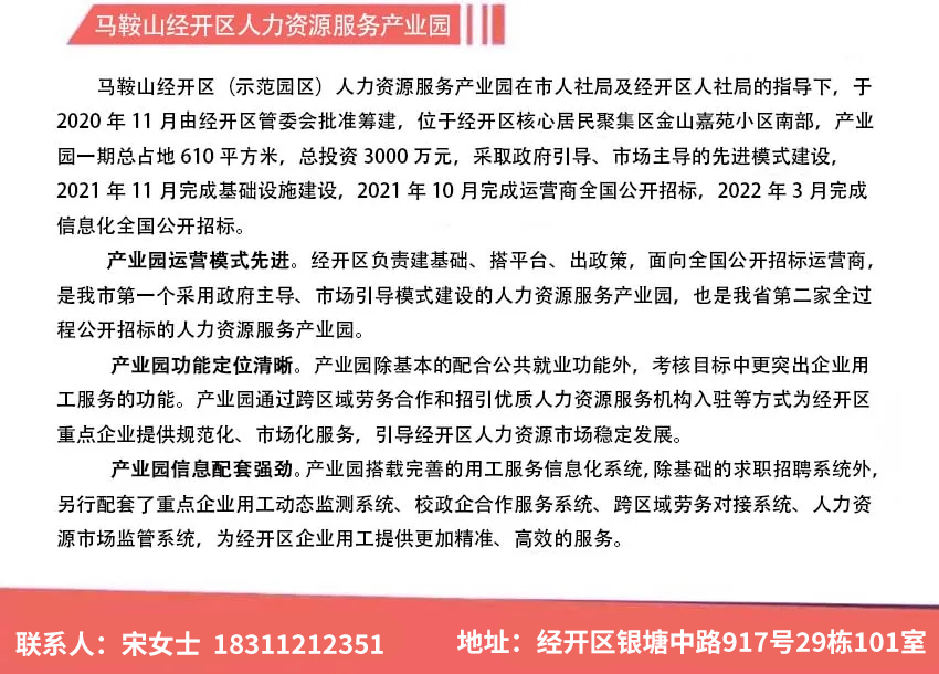 1.来马鞍山经开区人力资源服务产业园咨询