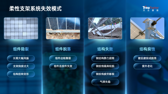 关于支架的可靠性,最新调查结果显示,当前柔性支架系统的失效模式主要包括:组件隐裂或脱落、钢绞线松脱或断裂、结构失效或腐蚀老化等。