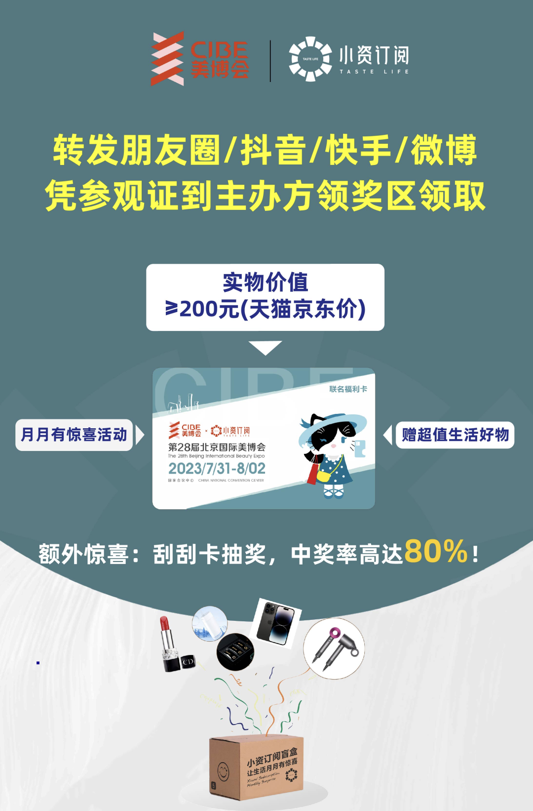 在以上分享基础上,点赞超过20及以上,凭借分享内容到【礼品兑换处】领取精美豪礼(抽奖盲盒形式100%中奖)+第28届北京国际美博会专属限定福利卡一张
