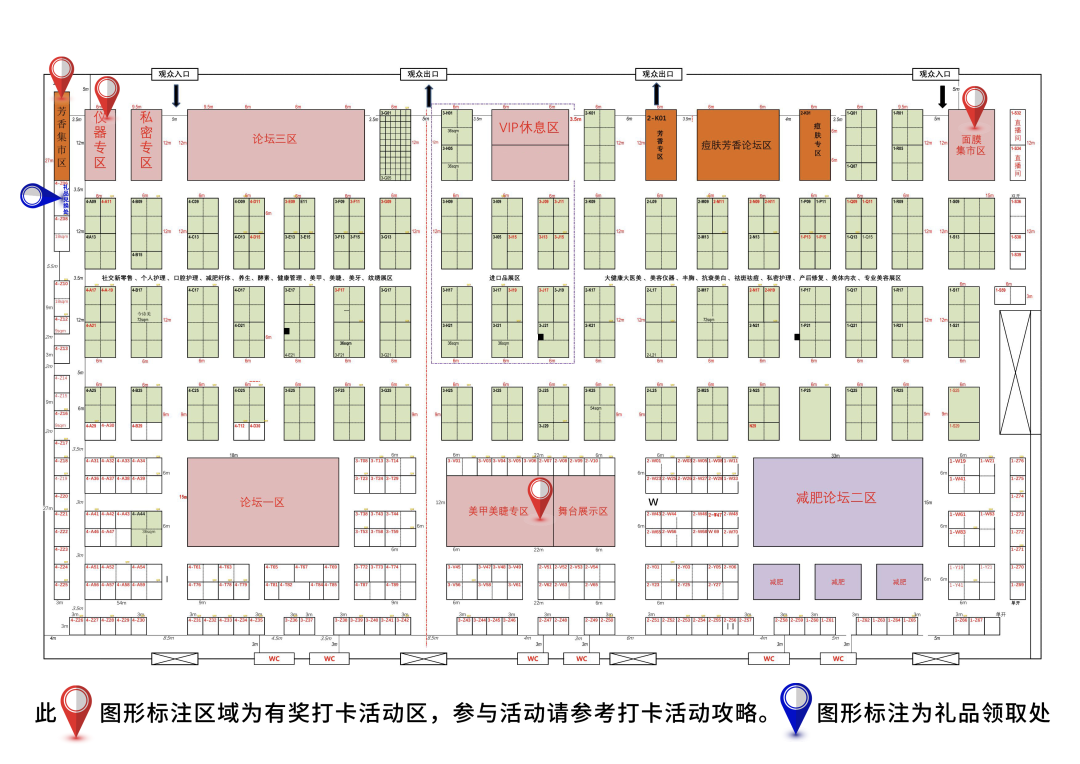 本次北京美博会设立【嗨FUN专区】【芳香集市区】【仪器专区】【面膜集市区】,凡是拍照打卡四大专区即可到【礼品兑换处】免费领取礼品