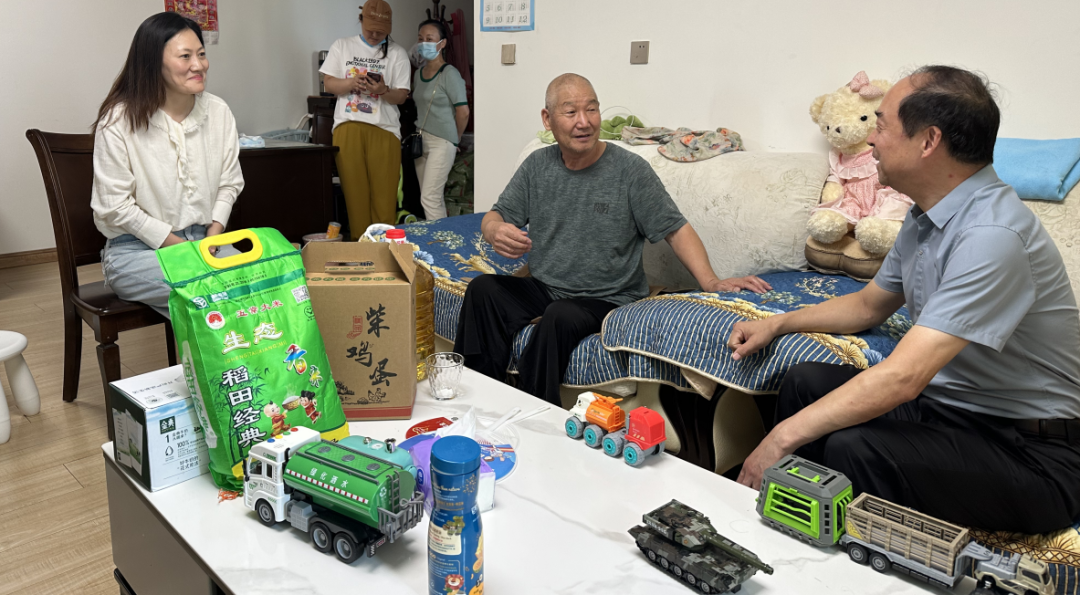 在中国人民解放军建军96周年来临之际,受会长唐明辉和7月份轮值会长钟惠隆委托,商会秘书处的同志于7月26日上午,联合人和路街道办事处前往辖区——郑飞社区慰问困难、伤残退役军人,向他们致以节日的祝贺和良好祝愿并赠送了大米、食用油、牛奶和鸡蛋等慰问物资。人和路街道办事处副主任左彩霞等街道和社区负责人陪同看望和慰问。