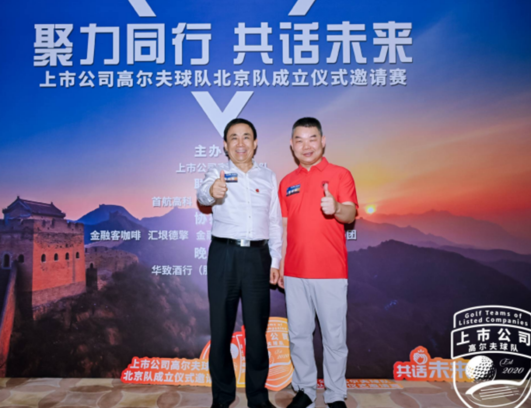 /金融街企业家俱乐部理事长董春平(左)与龚晓林(右)上市公司高尔夫球队创始人合影/