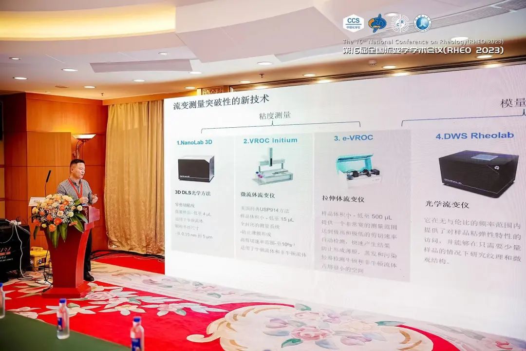 此次会议上,刘兵经理为各界观众呈现了一场十分精彩的学术报告。主题为《专为软物质开发的流变测量技术》,报告旨在探讨最新科研仪器在软物质领域的应用与发展。
