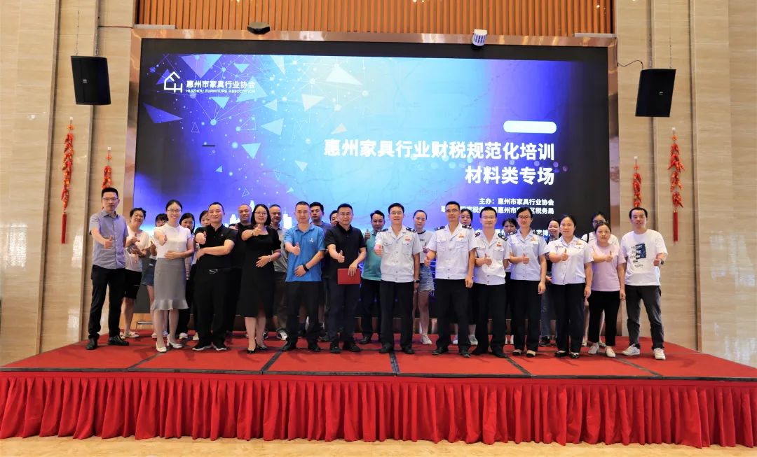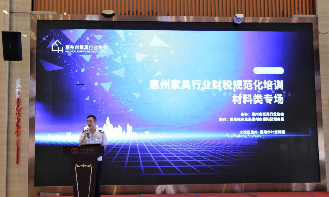 2023年7月27日下午,惠州家具行业企业财税规范化培训会——材料类专场在惠州市惠阳区华叶家博园营销中心大堂举办。