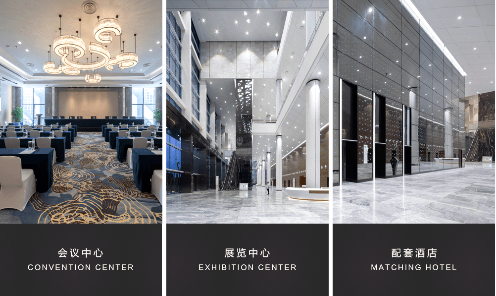 其中会展中心总建筑面积8.4万平米。室内展厅面积达21200平米,合计可容纳1235个标准展位;3200平米豪华无柱式大宴会厅净高8米,可灵活分为三段使用;会议面积达8000平米;大会议厅3个,小会议厅4个,多功能厅4个,可同时举行多个平行会议,另外配有多间VIP休息室可供休息;1500平米现代化厨房可满足3000人同时用餐。