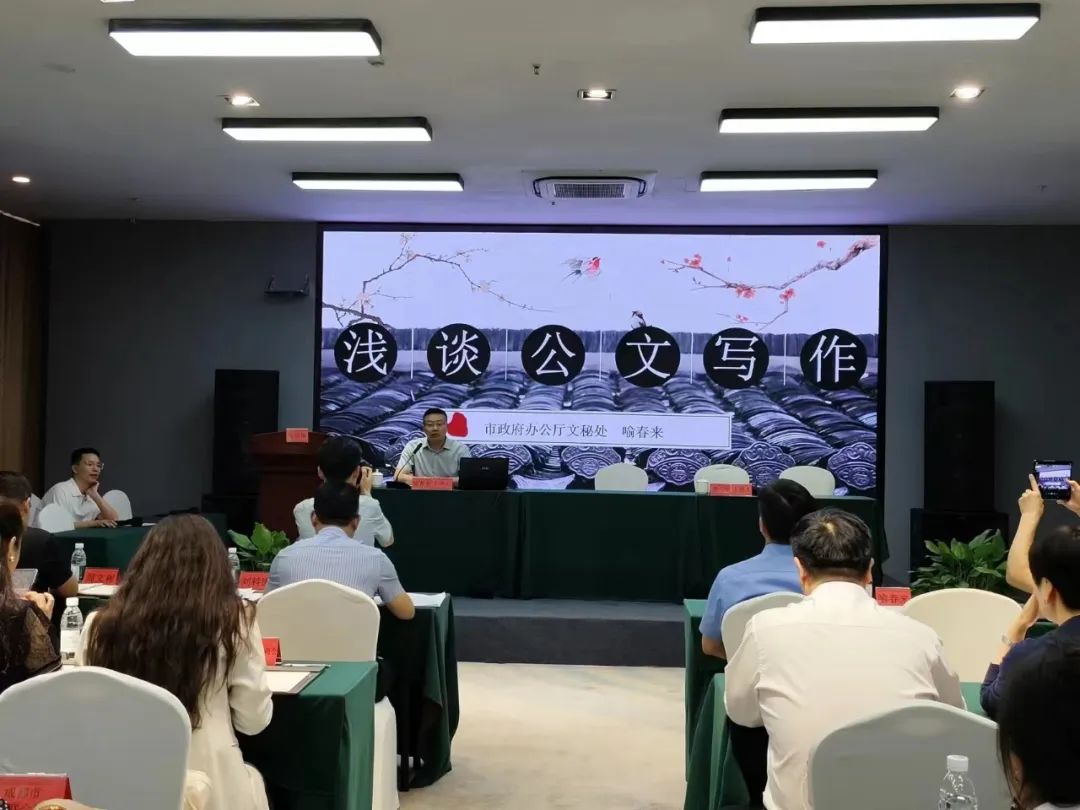 重庆市政府办公厅秘书处处长喻春来、重庆市人民政府办公厅信息处副处长刘科进分别作公文写作及信息写作辅导专题讲座。