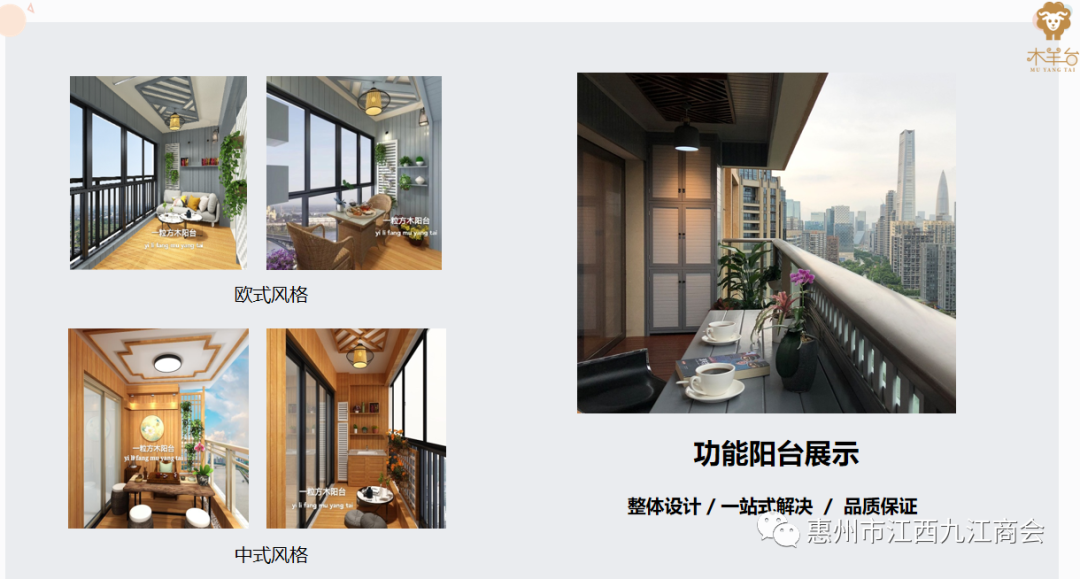 公司主要经营阳台的设计、施工、软装搭配等一条龙服务,秉承“创造阳台空间无限可能”宗旨。实现每个人心里藏着的那一片花园梦想!纯进口优质原料,开放式阳台或铝合金封窗,结合智能家居,后期绿植花艺搭配等全套服务,小小阳台,还您大大梦想。