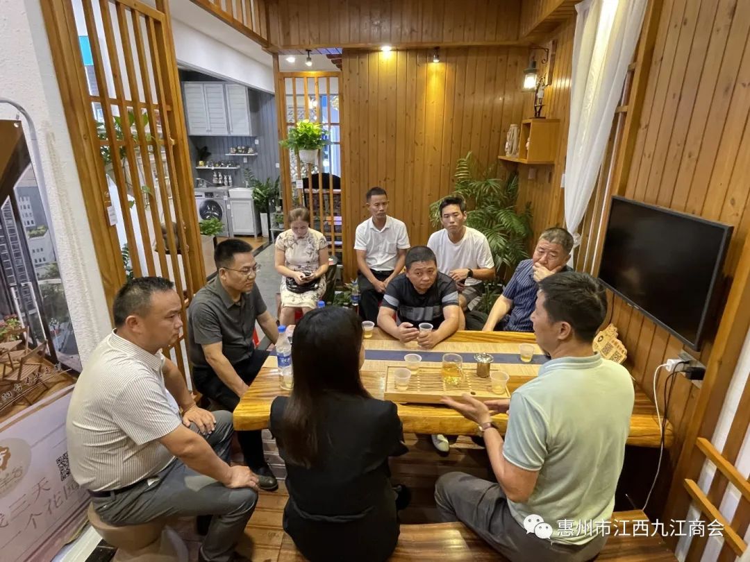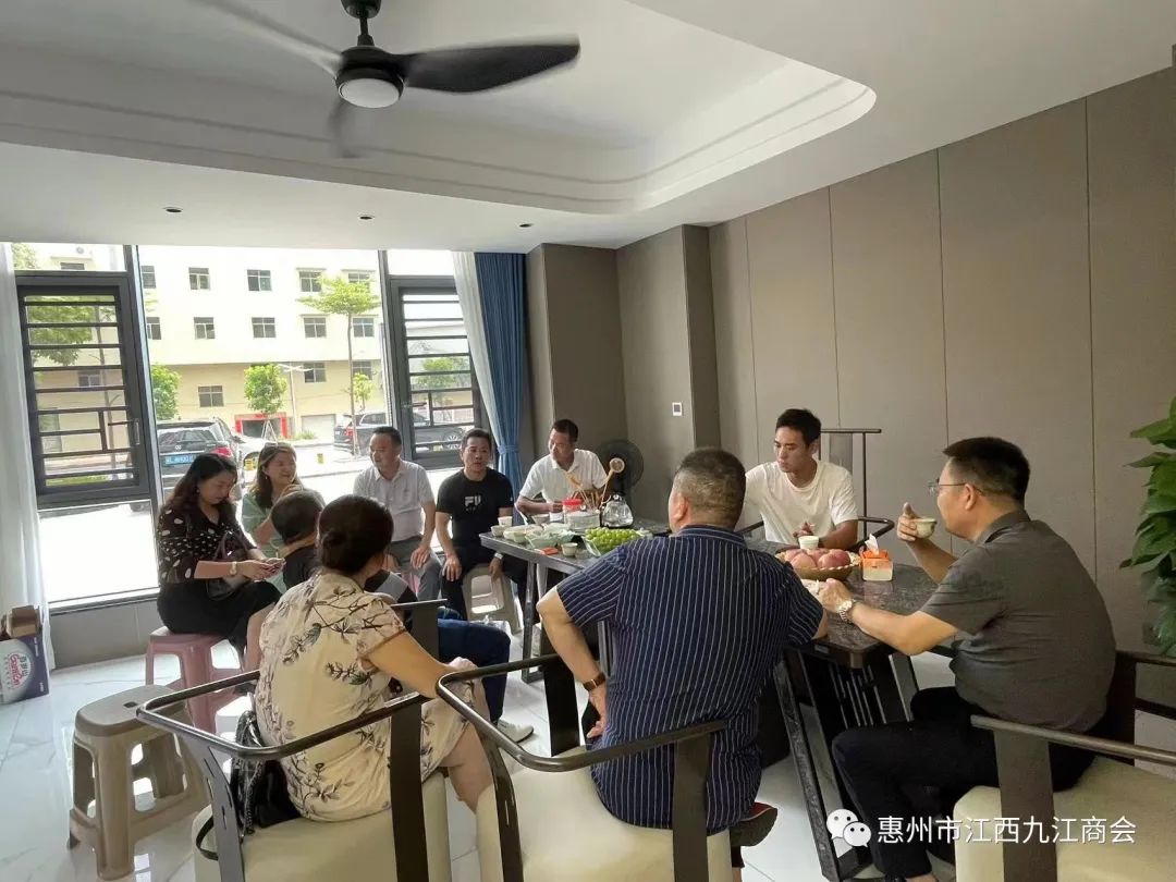 走访第二站来到了会员修水老乡邹晨刚装修公司——惠州市宁红装饰工程有限公司(位于惠城区世纪金湖花园7栋1单元1层)。受到了邹总热情接待,并带领大家一起参观公司,据了解,邹总公司乔迁新开业,喜气洋洋,在这里祝福宁红公司,新起点,大发展,财源广进,事业盛金。