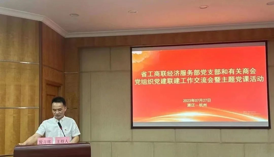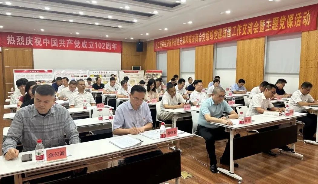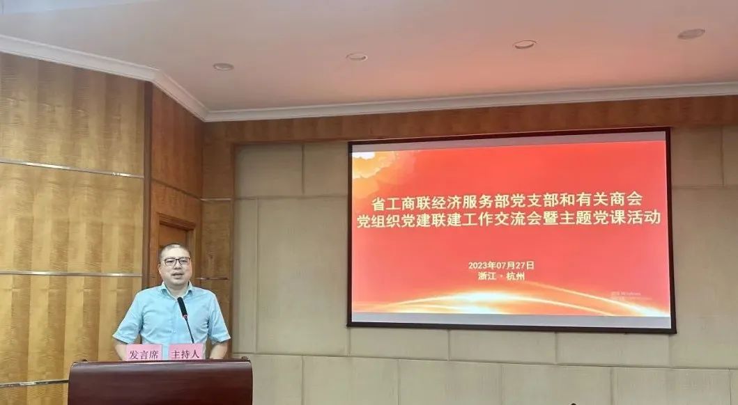 7月27日下午,浙江省工商联经济服务部党支部和有关商会党组织党建联建工作交流会暨主题党课活动在浙江省湖南商会召开。