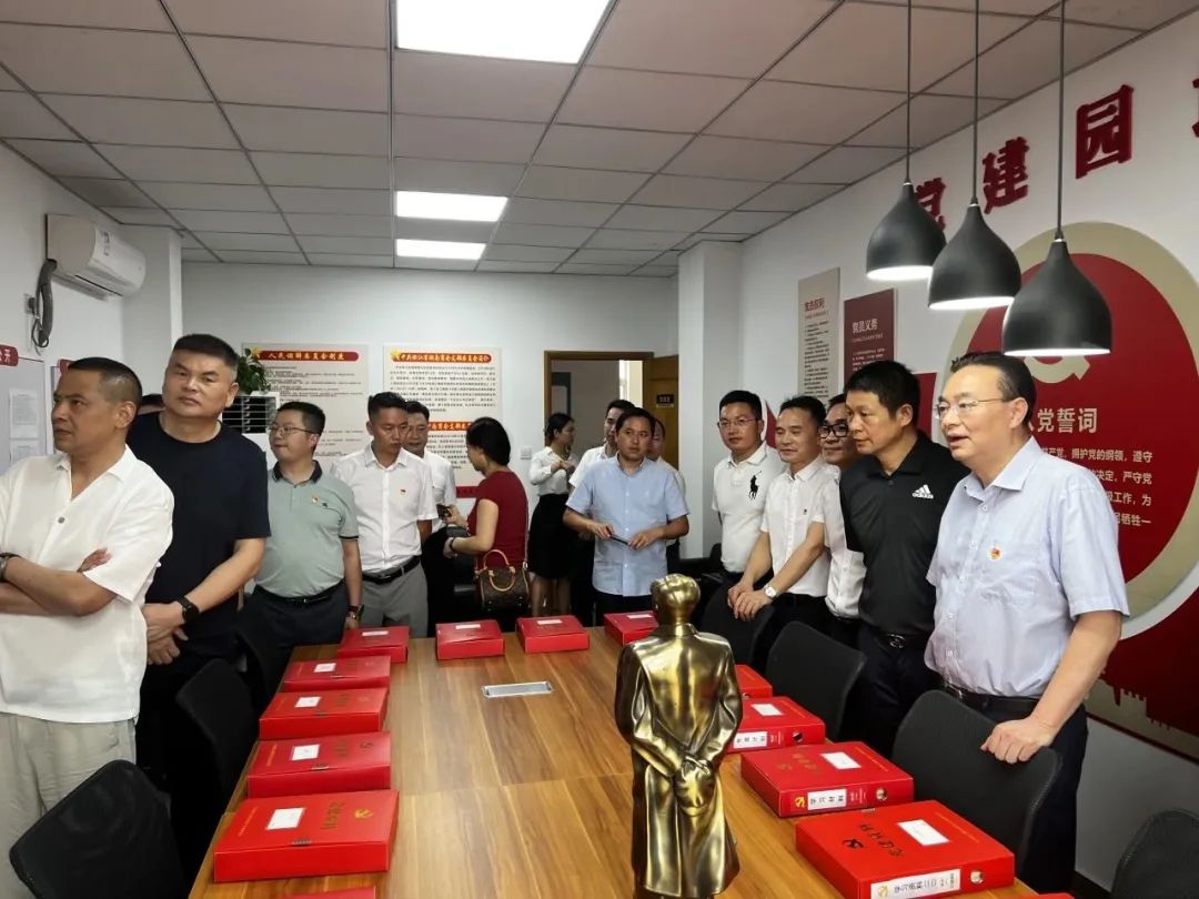 省工商联党组副书记、副主席蔡晓春带队省工商联机关党委负责人、经济服务部党支部全体党员及浙江省江西商会、浙江省重庆商会、浙江省汽摩配行业商会、浙江省小微企业金融促进会、浙江省科技装备业商会、浙江省中小企业经济发展促进会的会长、秘书长、党支部书记和部分党员60余人,参观了浙江省湖南商会会建党建发展。会长黄勇介绍商会情况并致欢迎词。