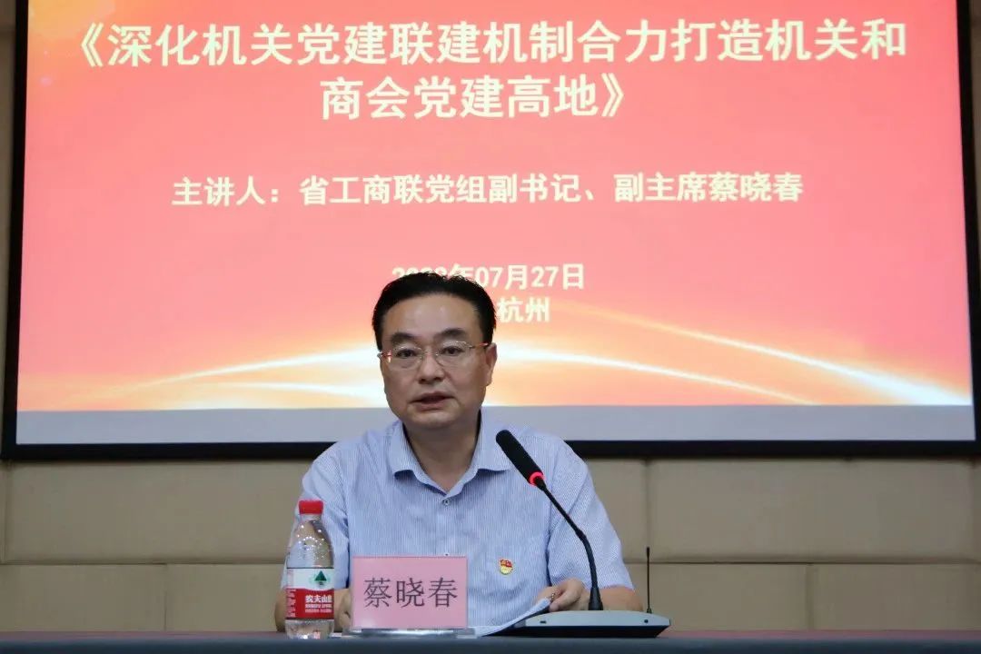蔡晓春副书记从充分学习领会建立机关党建联建机制的重要意义、充分了解落实机关党建联建工作的工作机制和主要任务、充分发挥“头雁效应”合力打造机关和商会党建高地这三个方面作了《深化机关党建联建机制合力打造机关和商会党建高地》的党课报告。提出并阐明了“为什么建商会”“怎么建商会”“商会怎么干”三个为什么,强调要强化党建引领,坚持浙商永远跟党走;强化管理监督,坚持规范化建设;强化服务指导,坚持基本站位,为奋力打造组织生活有序、学习创新引领、能力素质争先、廉洁自律过硬的商会队伍和支部队伍指明了方向和目标。