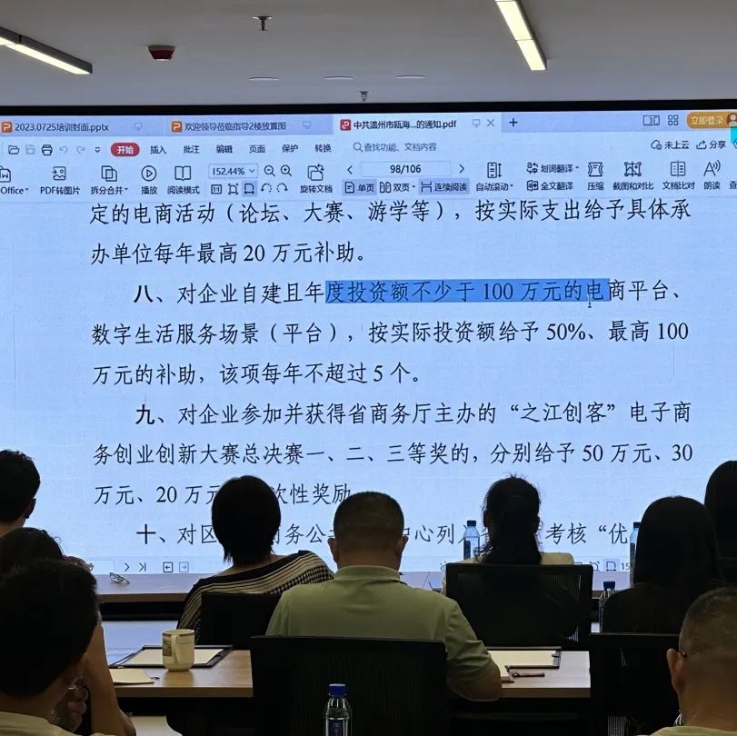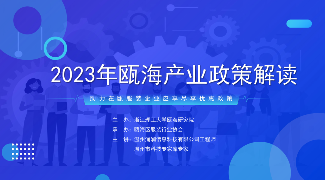 为提高在瓯服装企业对瓯海产业政策的了解程度,加快惠企政策落实力度,应享尽享政策红利,帮助企业建设合理的管理模式和增加利润营收,促进企业健康发展。7月25日,瓯海服装行业协会联合浙江理工大瓯海研究院在浙江理工大瓯海研究院二楼培训室举办了瓯海产业政策解读培训课。
