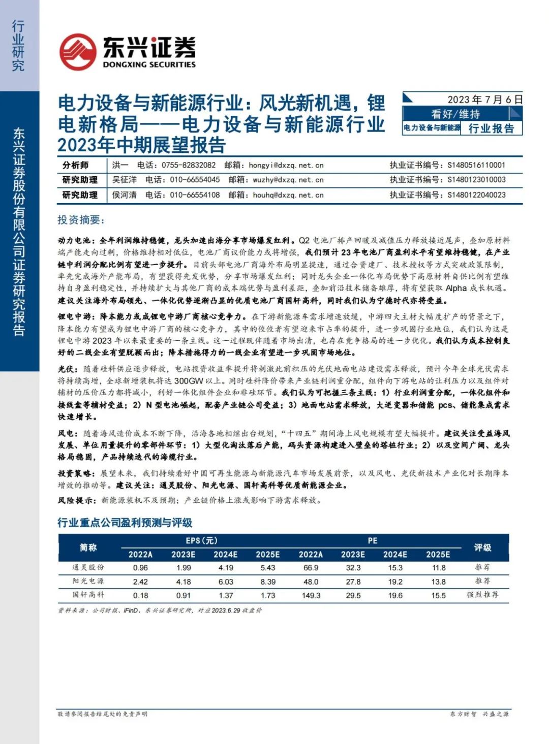 关注我们,后台回复“202307256”就可以获取《研报分享丨东兴证券:电力设备与新能源行业报告》(完整版) 的全文下载链接。